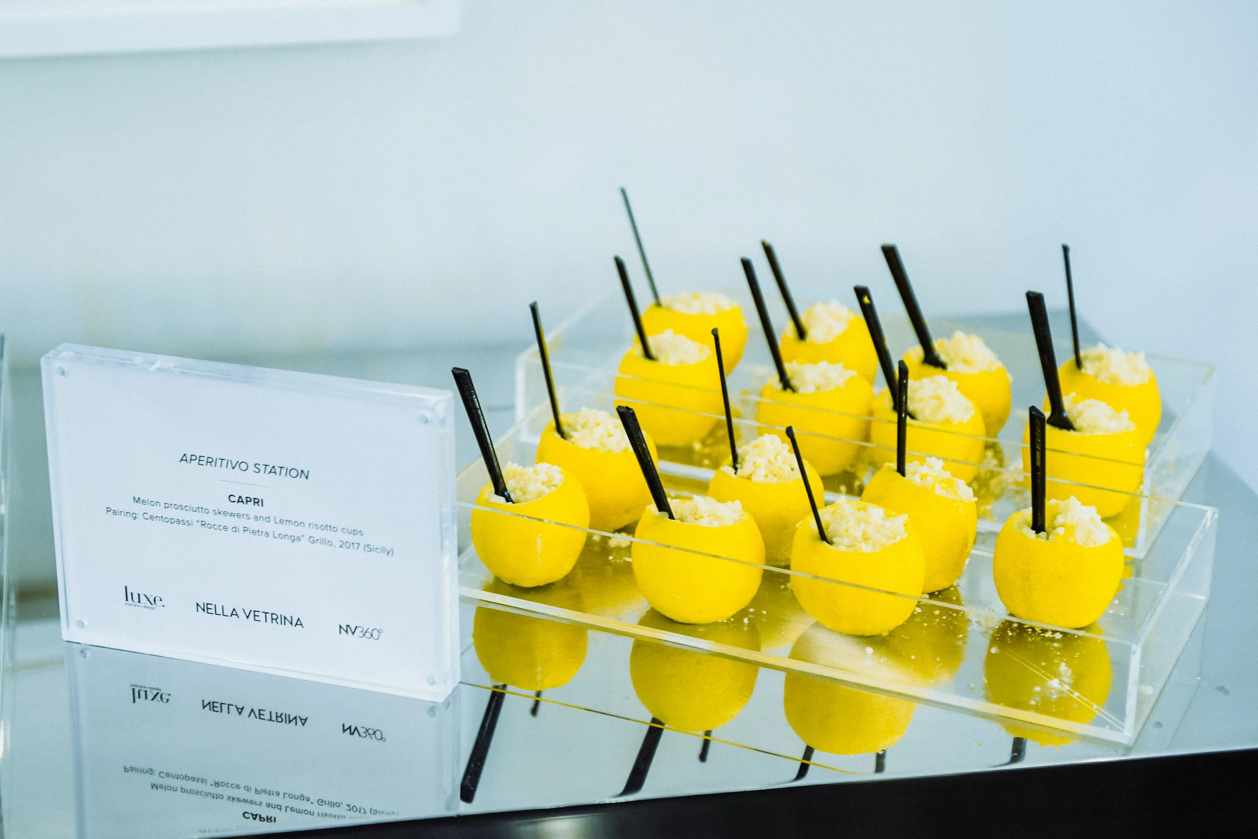 *Note: I made the risotto in advance of the event and heated it up in the microwave with white wine. This loosened the thickened risotto and also added nice flavor. If you are going to go this route be sure to under cook your risotto so that it still finishes al dente.